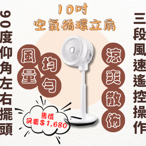 【90度仰角!強勁風力】10吋 空氣循環立扇